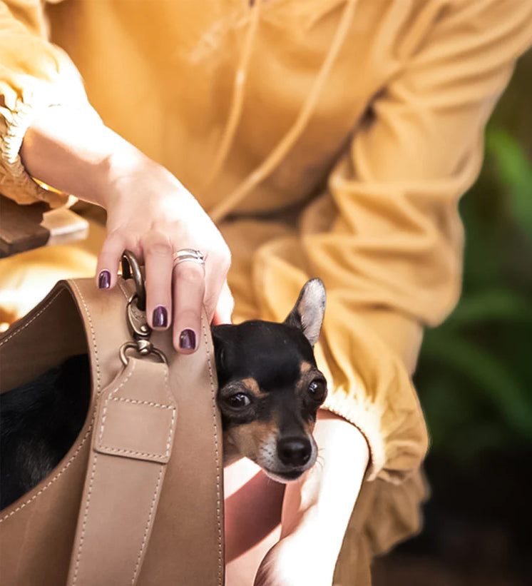 “This tote is an absolute game-changer for me and my pup! The sturdy and cushioned base comforts her, making it perfect for our long walk through busy city streets. Plus, it doesn’t scream “dog bag” – it’s stylish and discreet. Fritzy and I couldn’t ask for more in a dog tote. Loving it!”